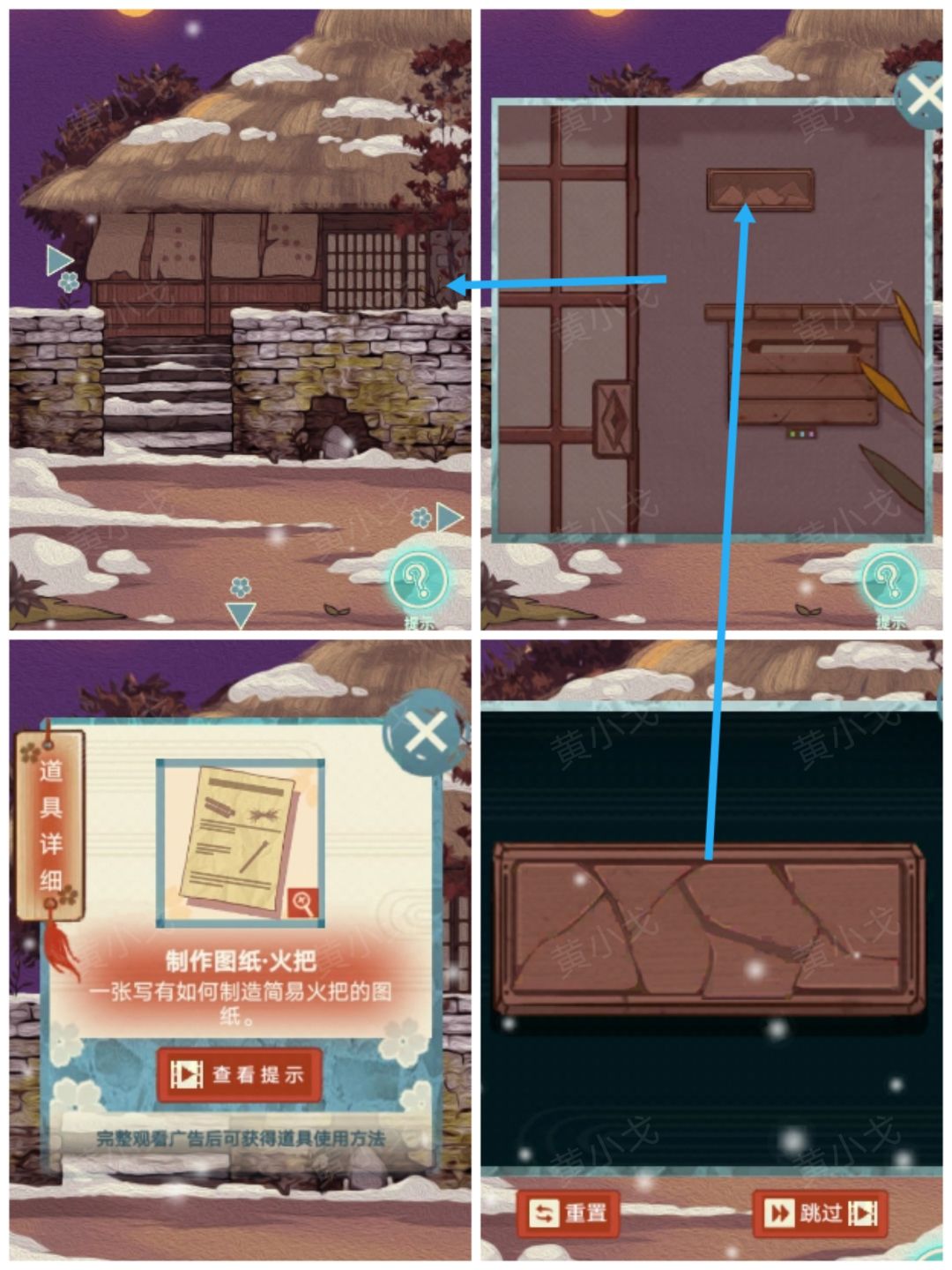 1.(农居-外)点击门旁边的门牌,完成拼图小游戏,获得【制作图纸·火把】