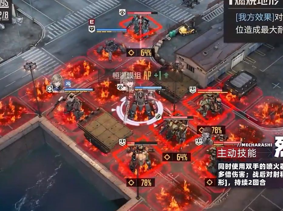 - 具备和艾琳的5×5范围技能【漫天】一样的5×5火焰地形制造能力