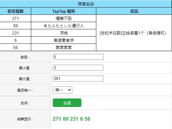 根据开奖结果显示,恭喜以下幸运的玩家们获得奖品: