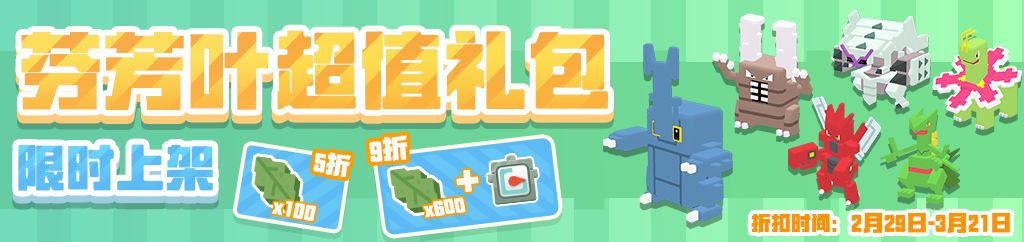 3月2日-3月3日、3月9日-3月10日、3月16日-3月17日,开启宝可梦松糕大挑战、宝可梦经验大挑战、宝可梦方石大挑战,每过一关,都能获得对应的首次通关奖励,反复挑战,还能获得重复奖励。
