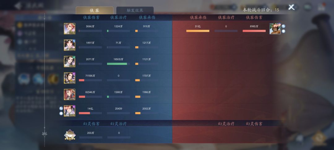4.输出位李逍遥普攻偷攻击和防御,也是因为这个效果,李逍遥的输出堪比雷灵儿(28万攻击的雷逍遥能打7亿,40万的雷逍遥能打15亿左右),每回合基本上保持在2层偷取。