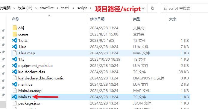 找到对应的路径,打开ts文件。(不能与项目原有的文件重名),比如main