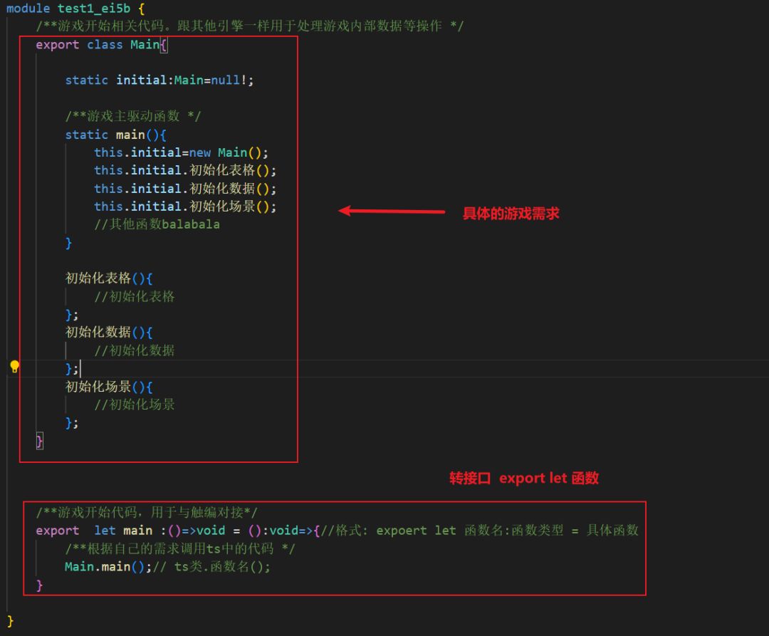 - [自定义脚本文件下的自定义函数] 与 [export let 函数] 对应。调用 [export let 函数] 时,会调用ts类中实际生效的函数,从而实现各种类里面的方法。