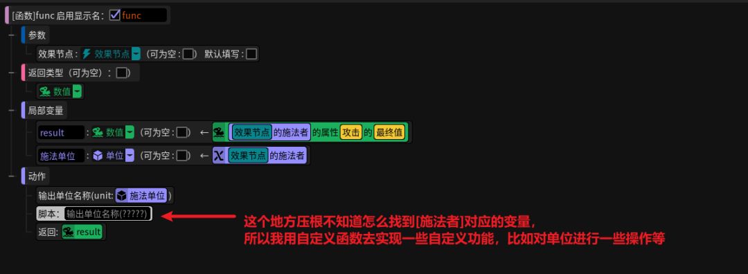 在技能、buff等数遍的时候,很难查找到对应的变量名称,因此一般我都用自定义函数,而不用自定义脚本