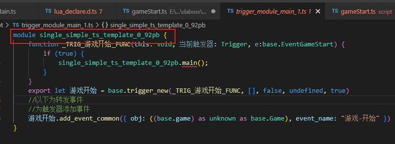 命名空间直接复制【项目根路径\script\trigger_module_main_1.ts】这个文件的命名空间即可