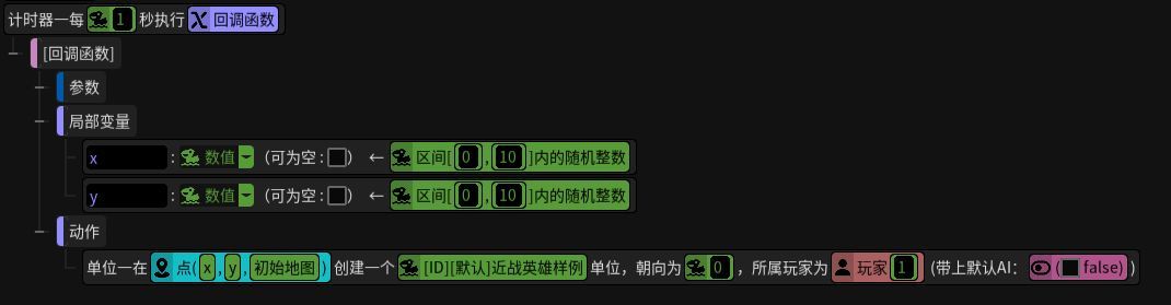 先用触发编辑器写函数,查看APi这一步的话,主要是当你写代码找不到API的时候,可以用该方法,看一下触编用的api是哪个,然后搬用它的API。比如:我不知道怎么生成单位,就在触发器写【生成单位】的函数我不知道怎么隔时间触发动作,就在触发器写【隔时间做xx】的函数