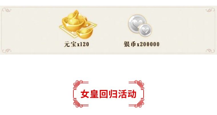 1、“女皇回归”活动将于3月1日00:00至3月30日23:59开放,超过15日未登录游戏的陛下活动期间再次登录时,将成为回归玩家,可于邮件中领取回归大礼包哦~