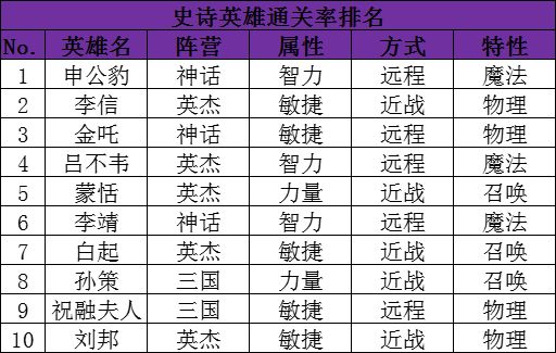 本文将根据全体召唤师大人的数据分析,提供1-10关卡中各品质登场英雄的通关率排行,希望能为新手召唤师大人在倾斜培养资源时提供一些参考。