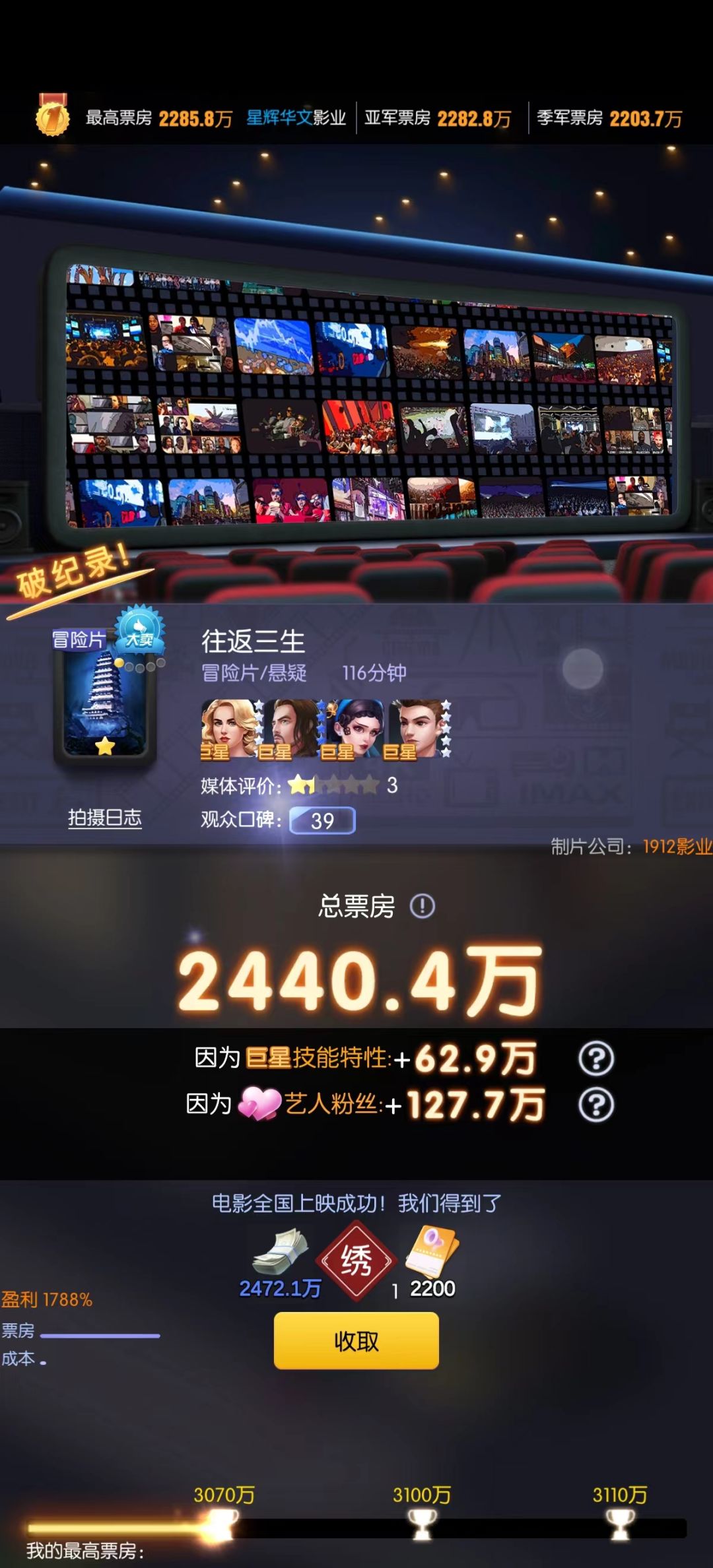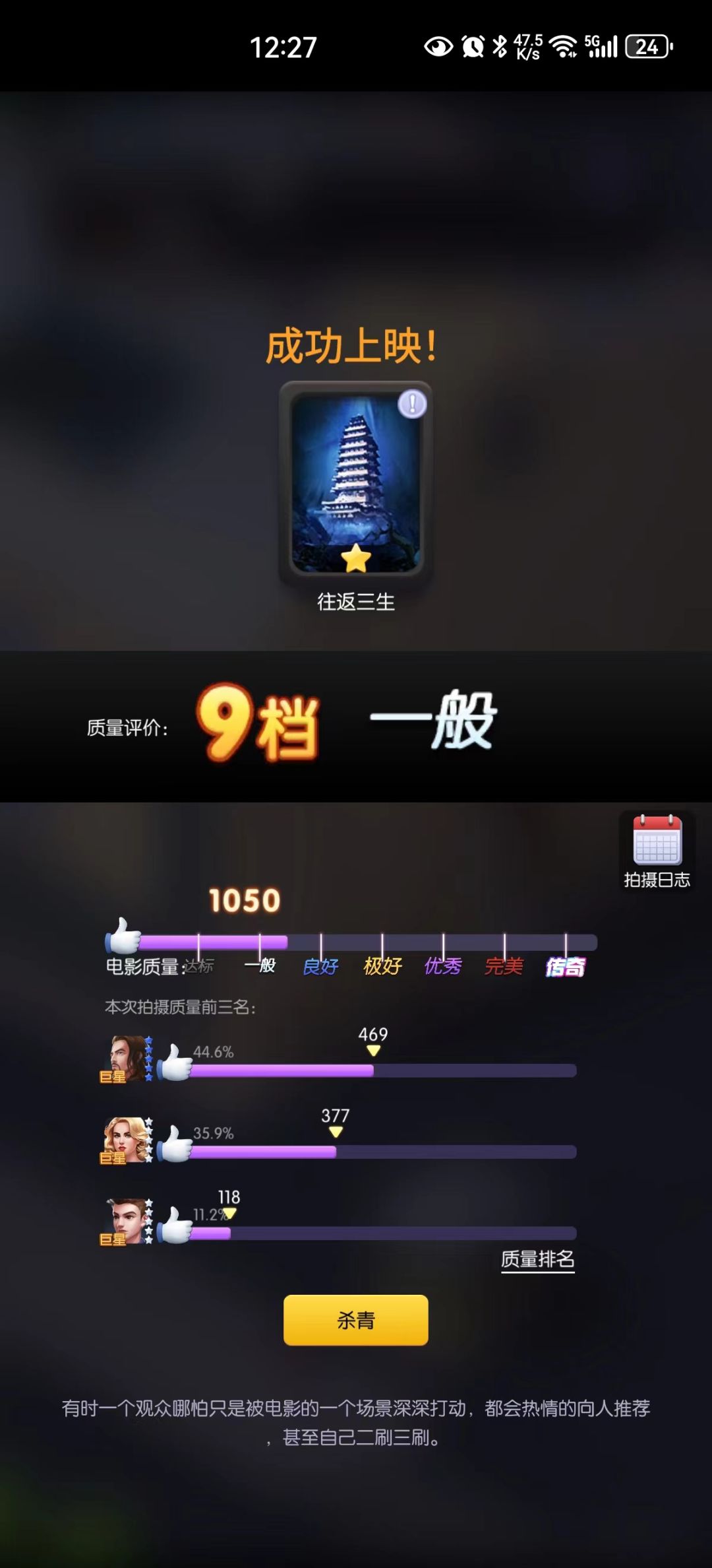 我用初始1星冒险剧本,拍成一部9档一般品质电影,票房2440万。