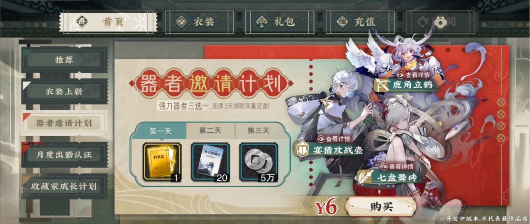 微氪必买,新手10连没有顺手的角色时,这个礼包可以挽救游戏体验。6元的价格可以获得强力器者三选一,这里的“强力”可没有一点糊弄的意思,确实都很好用: