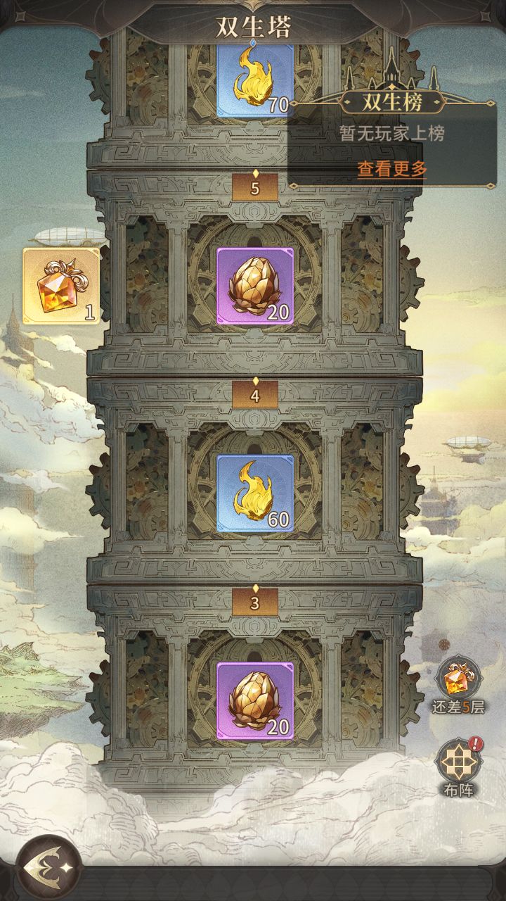 另外通过空海纪元探索关卡“孪生塔楼”后,就可以解锁双生塔玩法,派遣两支队伍出战,击败双生塔守卫可以获得大量奖励!