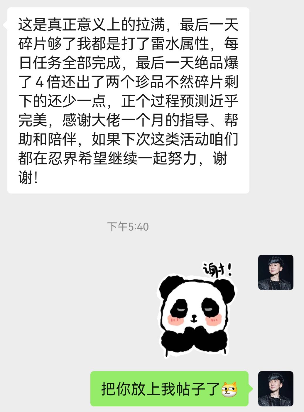 而最终的结果也完美验证了我的预言!fan666在换了一个紫雷令和六个1500档位通用后心满意足地停手(不再花勾玉);向来运气更好的fan66最终换了一个紫雷令和七个1500档位通用,且仅仅剩余16通用!完美收官!![[表情_开心]](https://img.tapimg.com/market/images/48516f625646b5ea2c66f0cab3c9c52a.png)