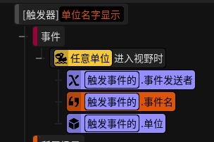对触发的单位创建一个附着面板和动态文字,文字直接获取触发事件的显示名,最后保存简单表(简单表是全局变量)