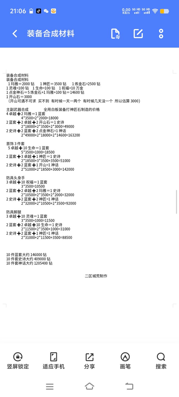 合装备材料都在这里了新人过来看
