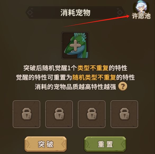 突破后获得突破特性:特性为被动技能,简单说就是强化宠物学习的技能。