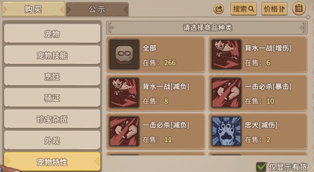 在交易所中寻找(一转宠物,品质稀有,成长不做考虑,控制价格在1000-2000金贝),随机获得突破特性。