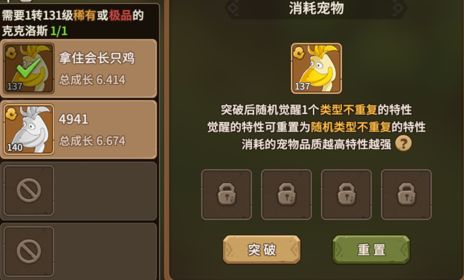 保持平常心态,转宠把成长不合意的宠物,通过挂机升级,用于突破材料。