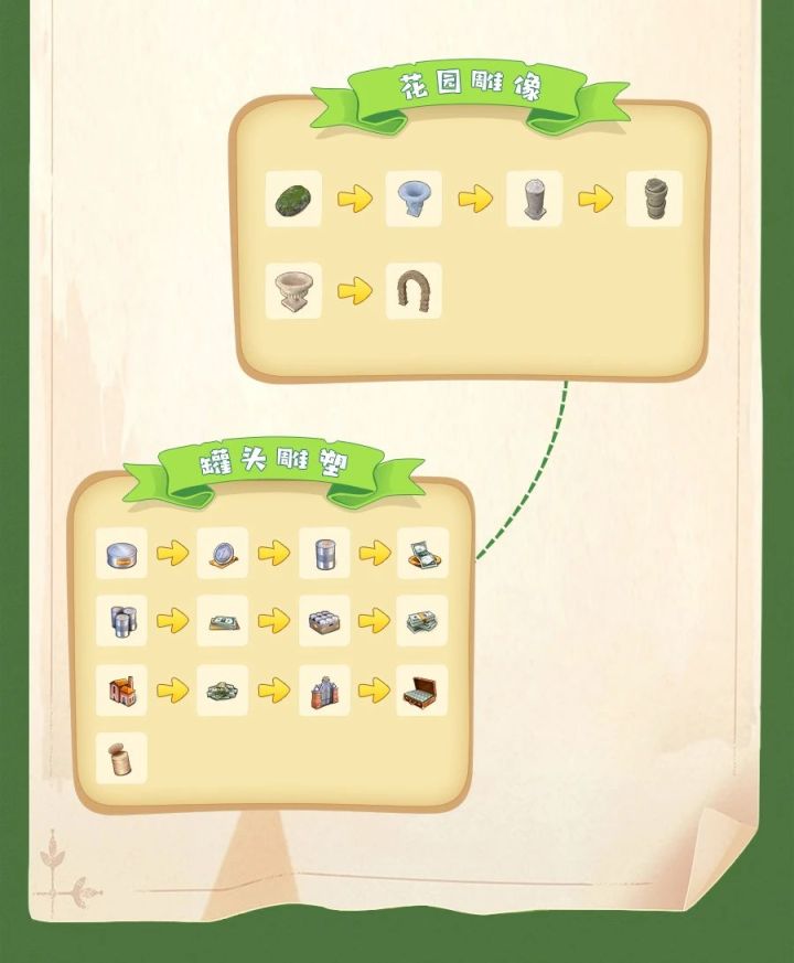 技巧建议:把花丛围一圈在加速器旁边,快速合成升级。满级停手,国服好像可以提前结束来着,我忘了,国际服要一直等到时间结束。拿到图2中的石头合成拱门,有时候可能材料不够,还得再次进关卡重新刷。拱门建议多造几个,可以快点合成最后的锡罐,推荐造三到四个,只造一个实在太慢了。