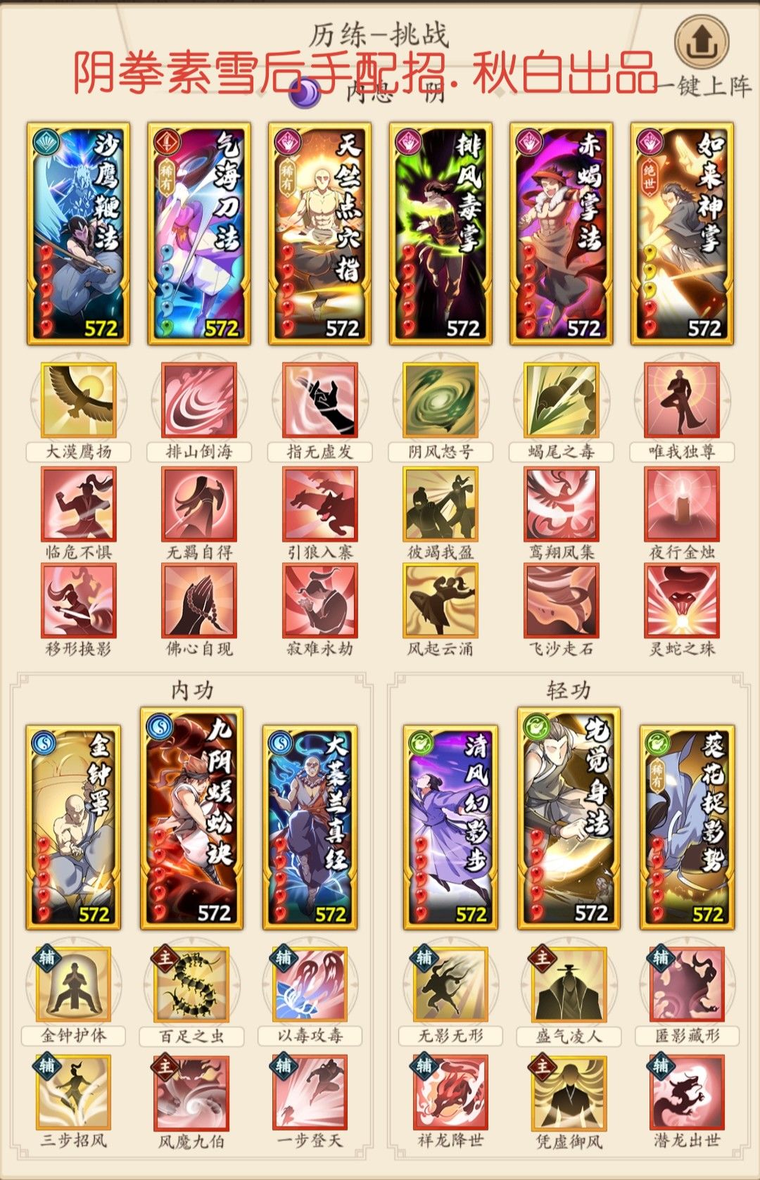 我是秋白,需要看更多攻略配招或查询配招可点击进入我个人主页慢慢翻找,也可+我VX:qiubai1177 进入拳修交流群取经.
