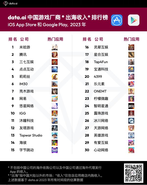 2023游戏厂商出海榜:米哈游首次超越腾讯位列榜首