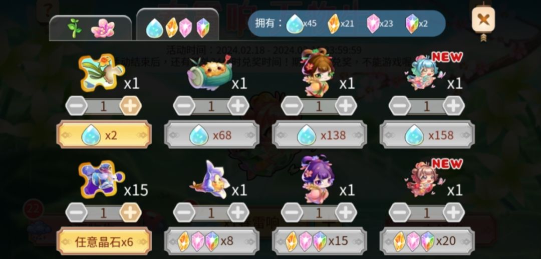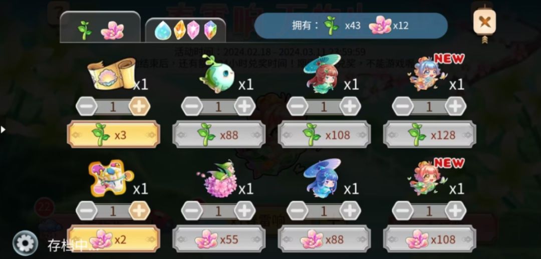 使用收集到的嫩芽和小花可以兑换心怡的奖励。