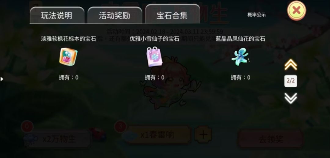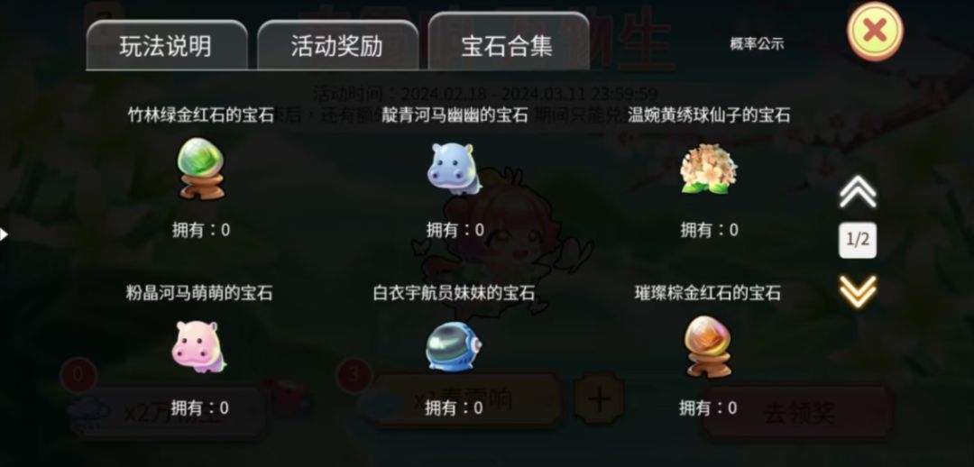 2、活动需要的宝石为: