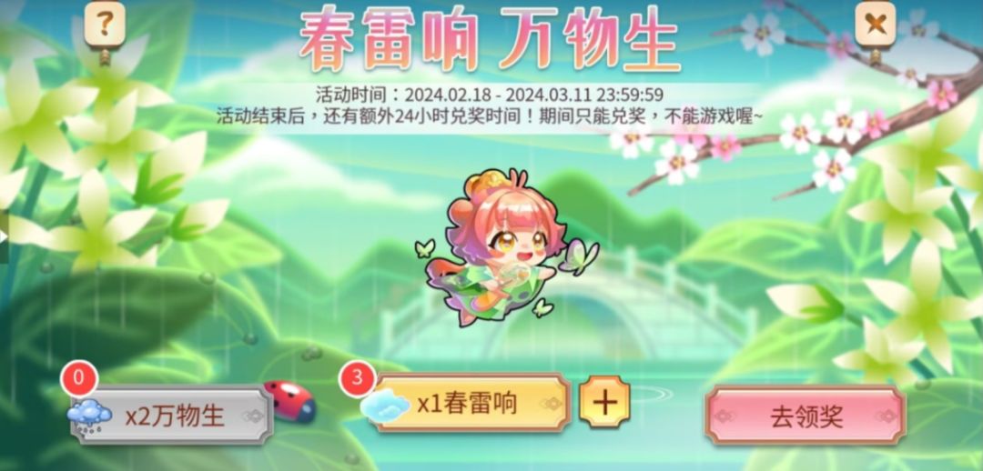 1、本活动分为三部分:春雷响、万物生、去领奖。