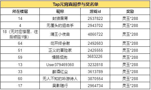 恭喜以下10位天师大人获得🎁喜闹参与奖(灵玉*288)