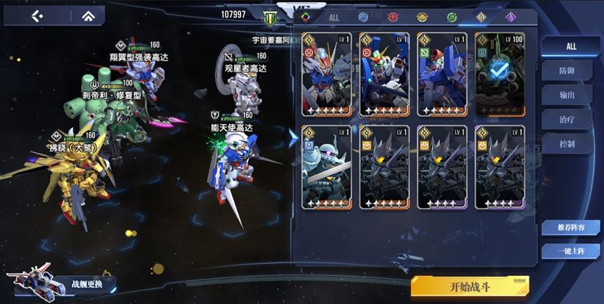 阵容机体:拂晓(大鹫)、能天使高达、观星者高达、翔翼型强袭高达、刹帝利·修复型