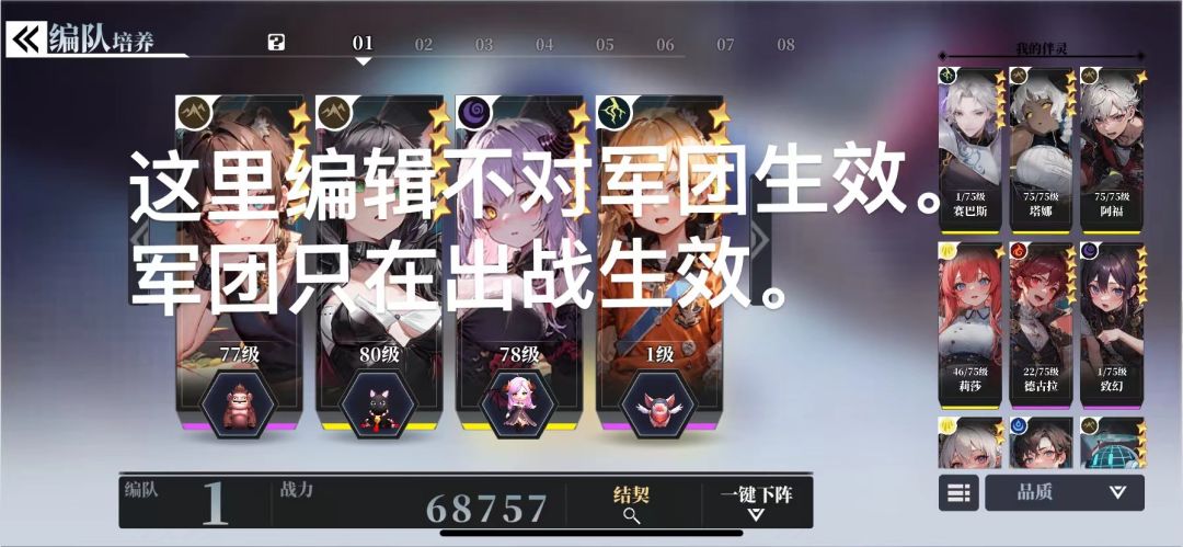 注意‼️注意‼️伴灵编辑分配的4个伴灵在军团里不生效![泪目]
