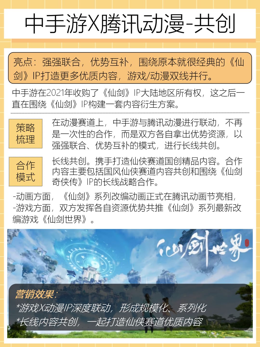 合作模式:长线共创。携手打造仙侠赛道国创精品内容。合作内容主要包括国风仙侠赛道内容共创和围绕《仙剑奇侠传》IP的长线战略合作。