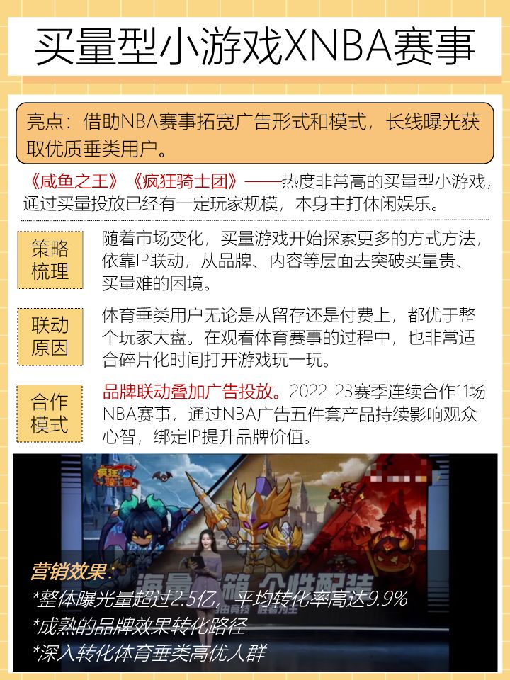 一、买量型小游戏(咸鱼之王、疯狂骑士团)X NBA 赛事