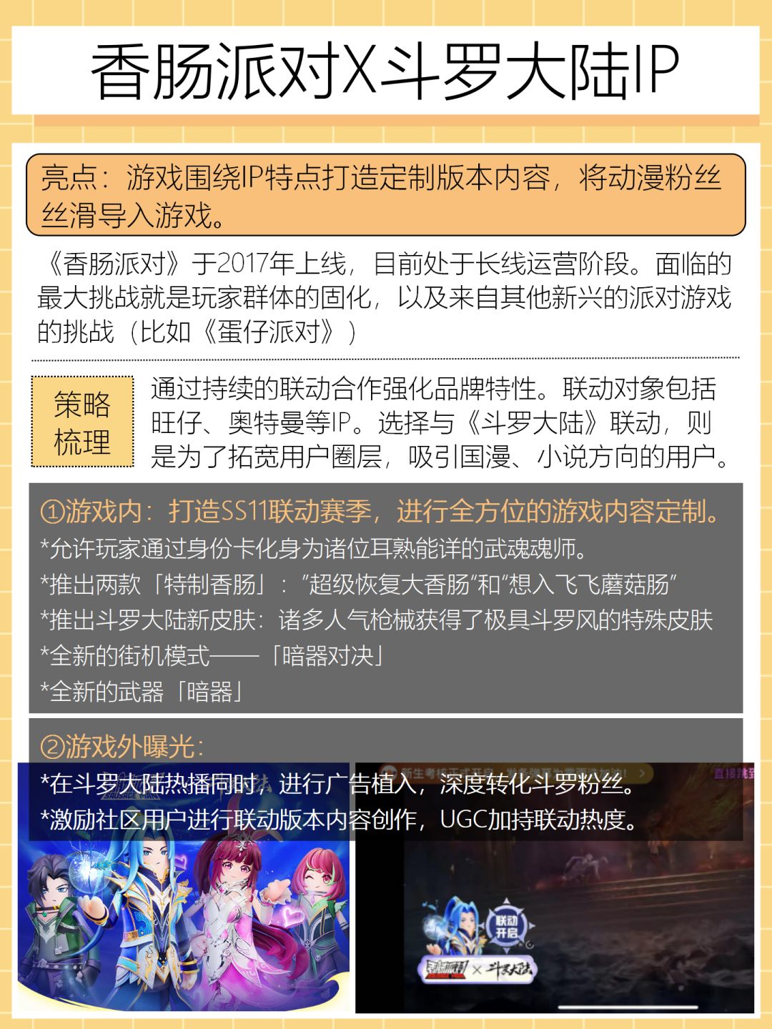 策略:随着市场变化,买量游戏开始探索更多的方式方法,依靠IP联动,从品牌、内容等层面去突破买量贵、买量难的困境。