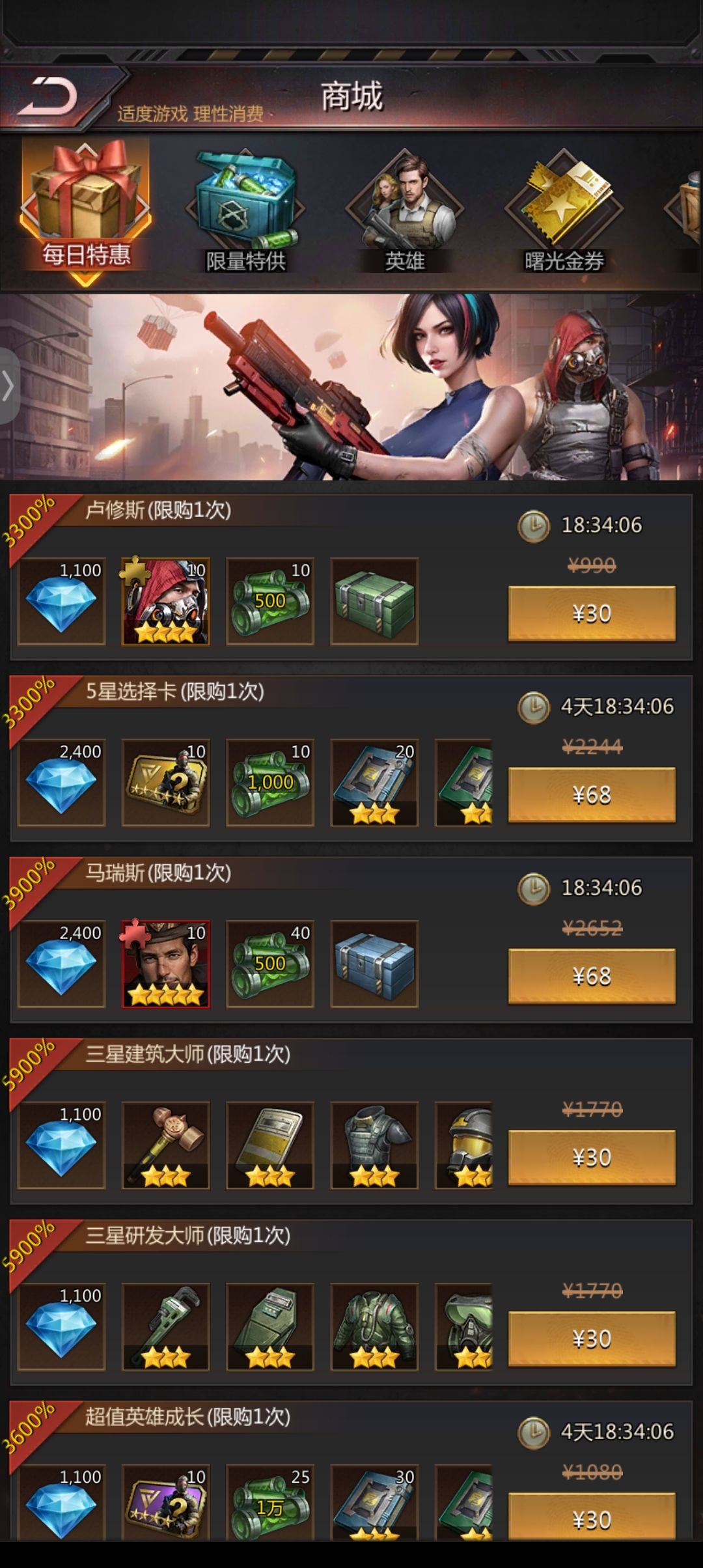 但是作为一个新出的游戏 没宣传没热度就这么几十号玩家的游戏 是不是太着急了 不说别的 但但首冲三十就让人笑掉大牙 买个行动力还要一千多砖石