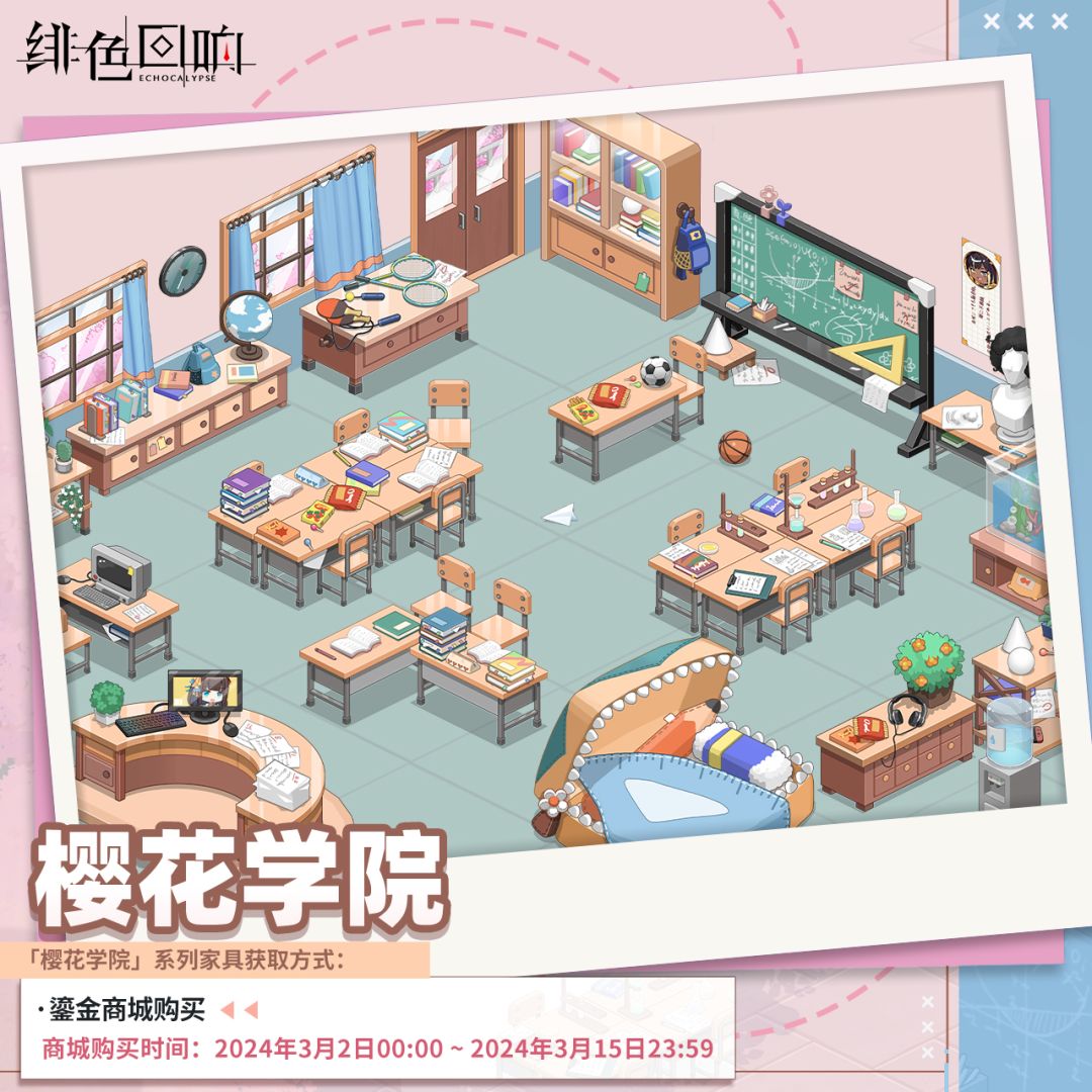 我们将于2024年3月2日限时上架【樱花学院】系列家具礼包。