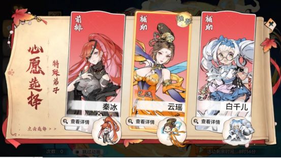 本期仙缘弟子有三位,云瑶,秦冰,白千儿,接下来由我推荐抽取哪位弟子。