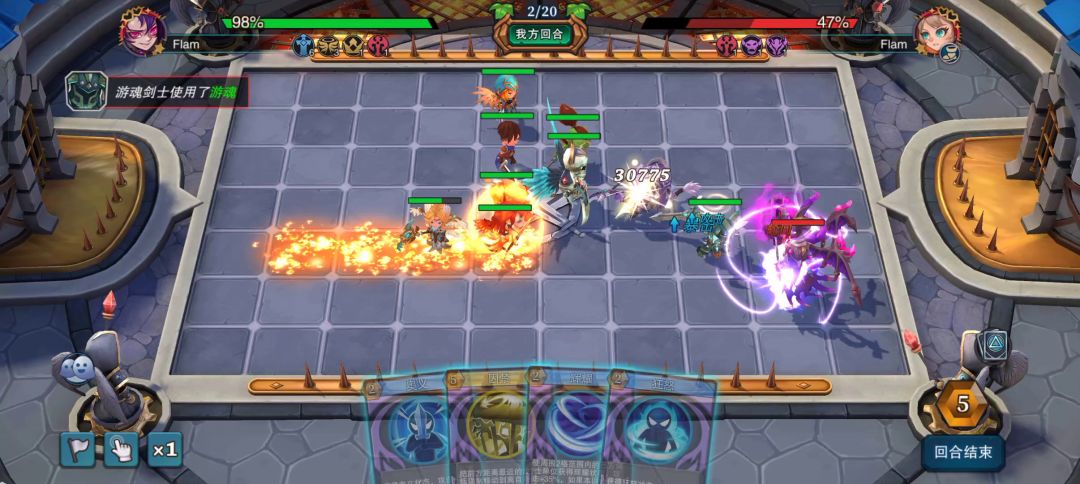 打刺客这种前后排都有单位的阵容,也可以通过卡站位的方式让游魂剑第一回合不要打到人,第二回合游魂剑会直奔拉姆塞而去,视频中游魂剑砍掉了2个灵体,不给刺客拖发育的机会,打了全场最高的伤害