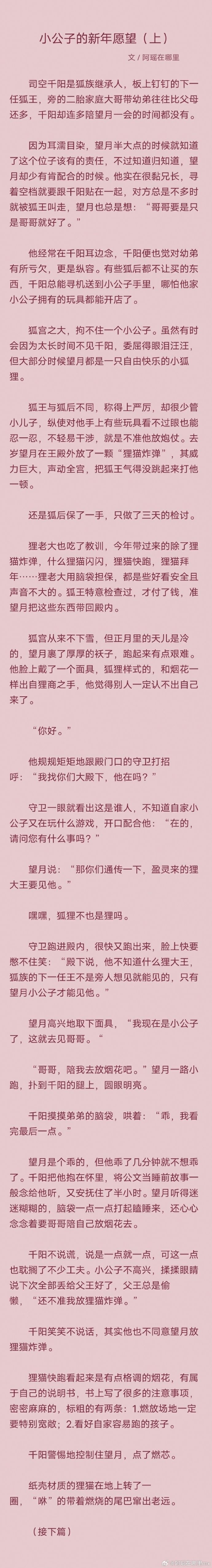 “哥哥,陪我去放烟花吧。”望月一路小跑,扑到千阳的腿上,圆眼明亮。】