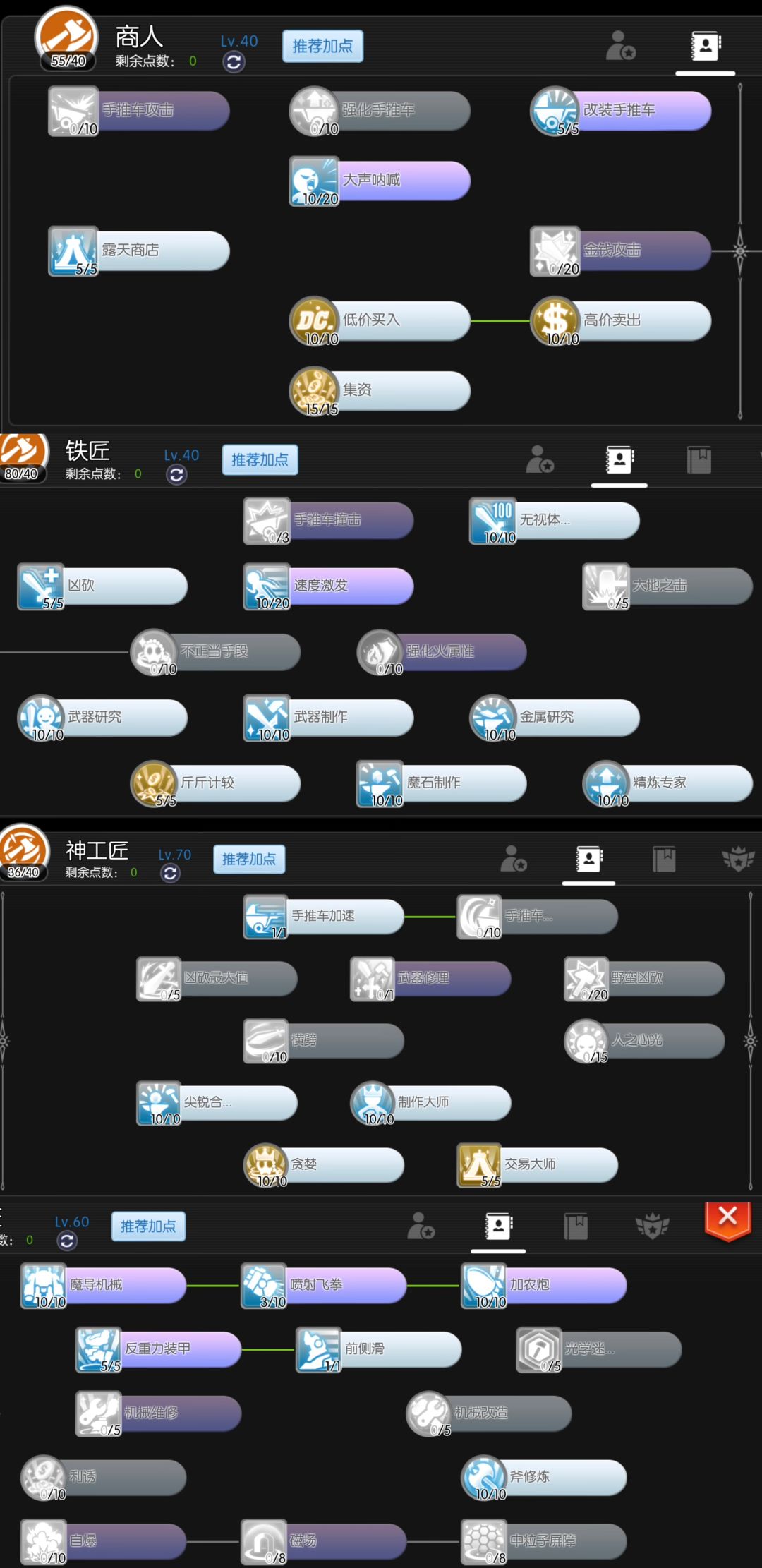 武器制作或者魔石制作至少一个需要点一级出来,这样就会有副产物燃料,至于是做武器卖还是做其他魔石卖请随意,相关技能点上就好了。