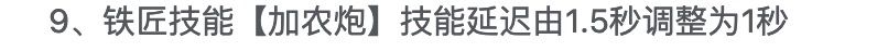在2024.2.28日的更新中,调整了铁匠的加农炮,技能延迟从1.5减到了1秒。