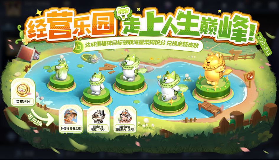 建设乐园获取乐园币,升级达成里程碑目标可以获得大量菜狗积分,