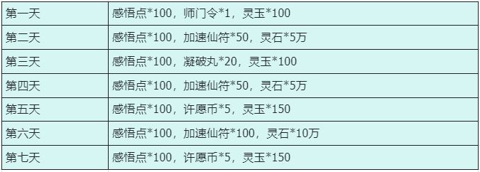 春华秋实活动持续7天,首先会开启7日限时签到,有感悟点、灵石、灵玉等丰厚奖励,各位祖师大人不容错过哟