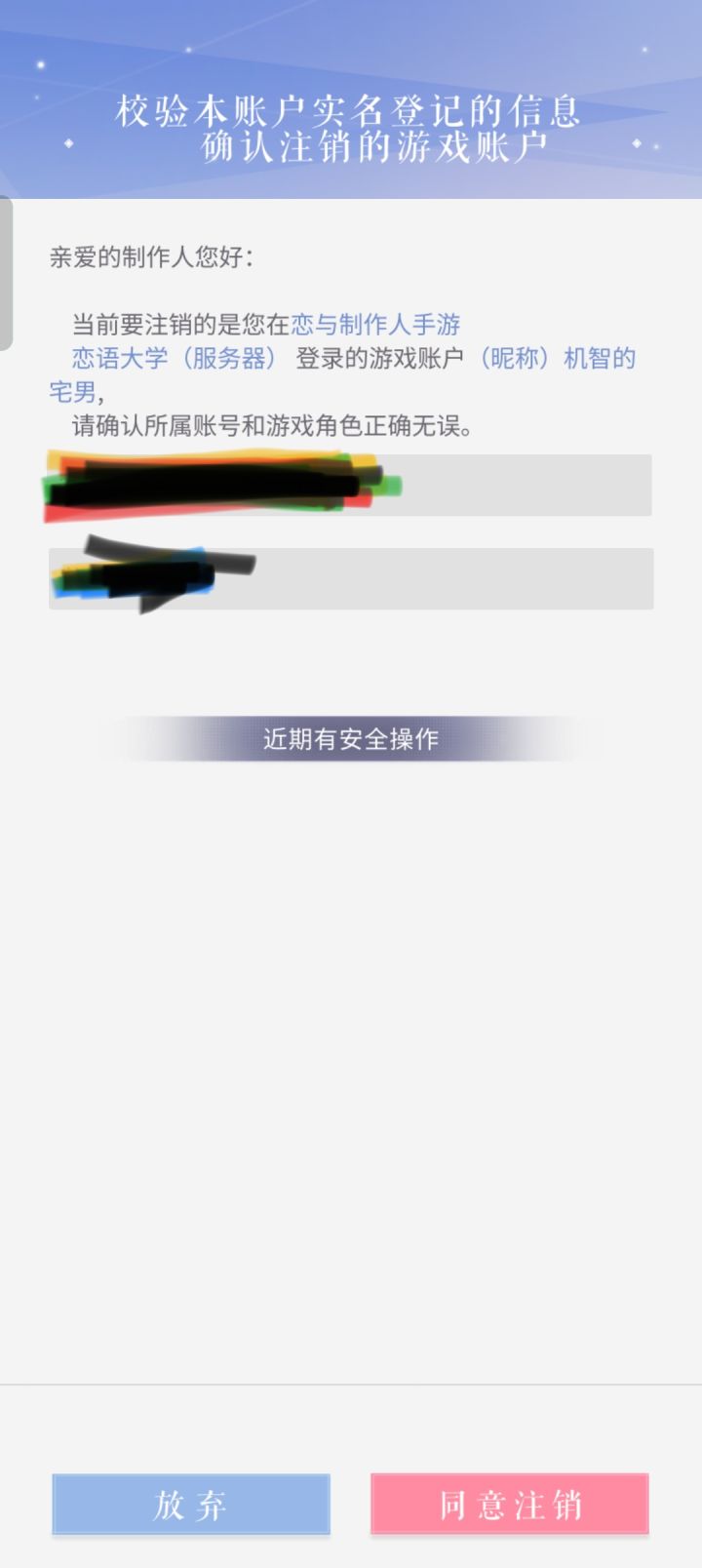 注销游戏角色账号