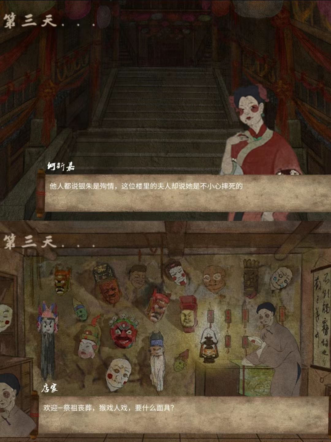 游戏从黑白无常的对话开始,引出了一个以玩家为视角的,何斯嘉的故事。