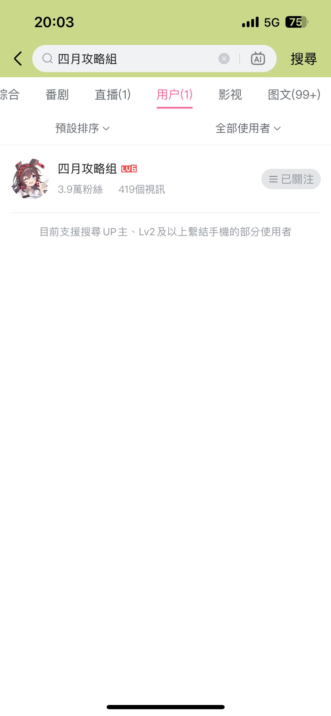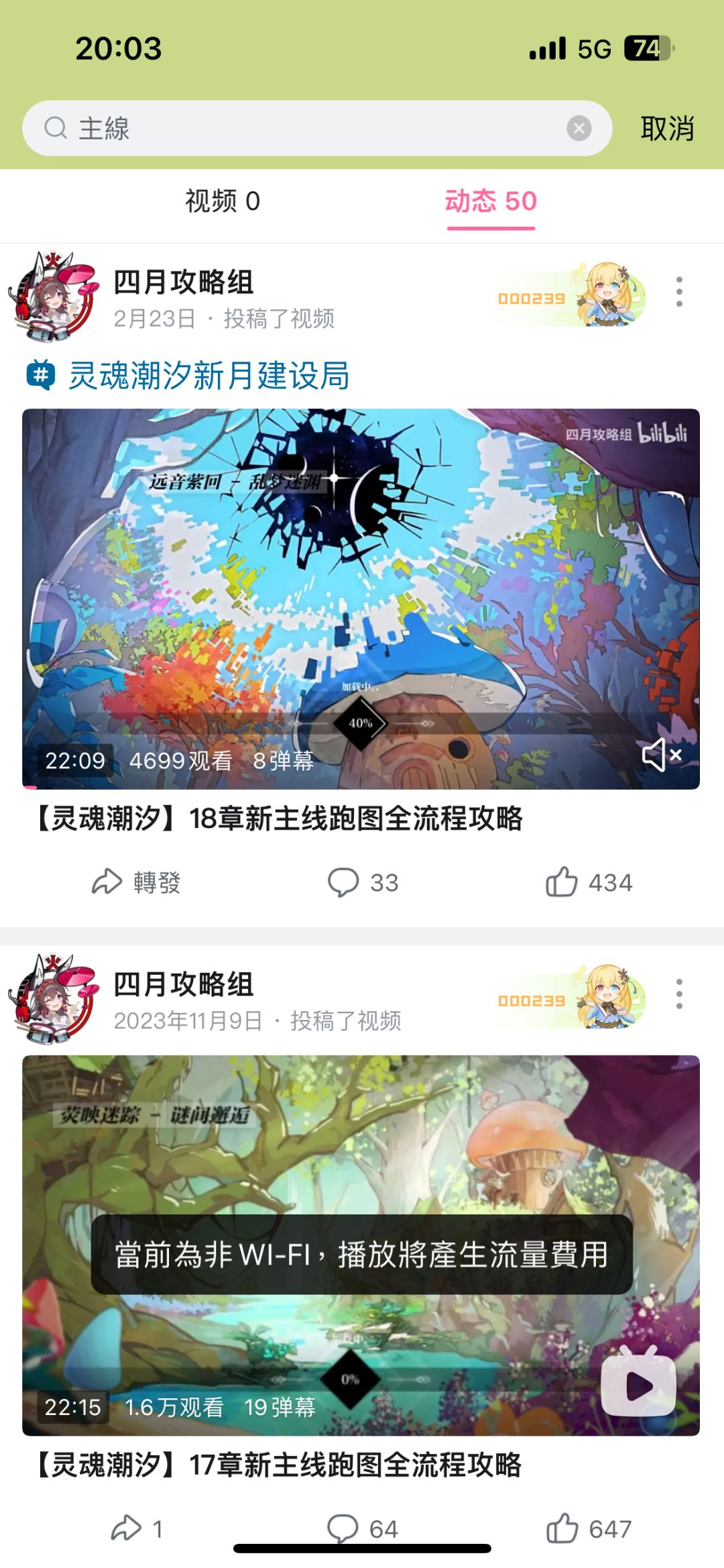 2.點開嗶哩嗶哩,搜索四月攻略組,找到用戶,點開主頁,主頁搜索主線。主線攻略結束