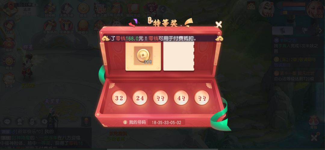 )。那么红包怎样有机会获得呢? 一,每天在日常里面的,今日修为(活跃度)达到150的时候,便可参与每晚20:00点的全服红包抽奖活动,一等奖与特等奖都是不小的红包哦