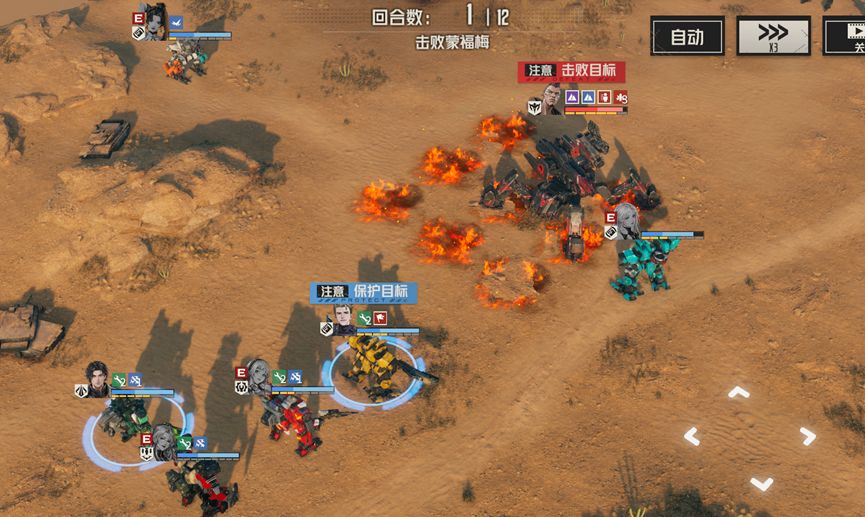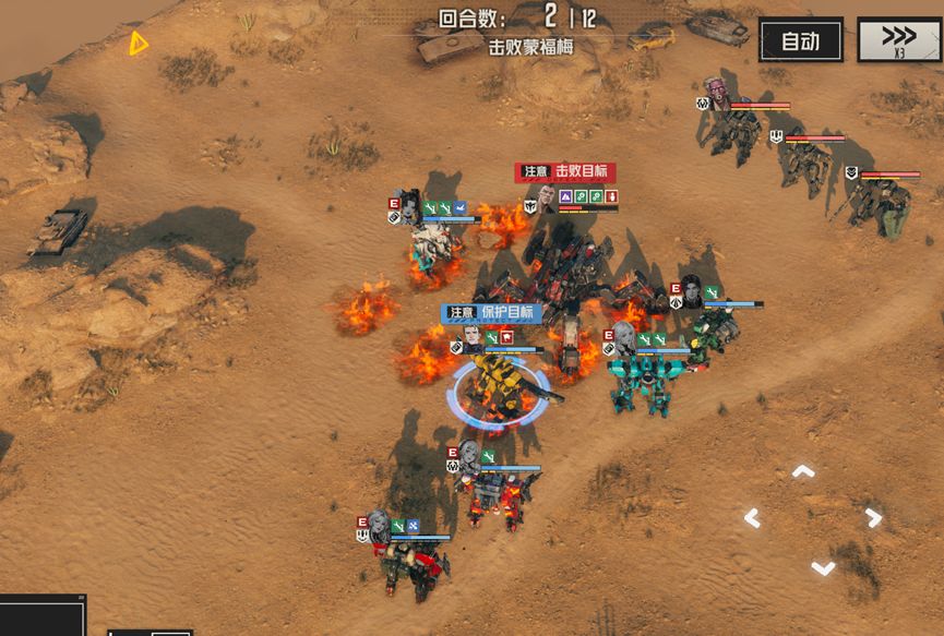 开局先清理boss周围敌人,破除减伤效果,随后通过通过狙击手瞄准,或者,格斗攻击打中左臂的方式,优先击破泰坦左臂,使其无法释放火箭技能,或者让雷文技能消灭敌人,使泰坦失去ap,达到同样的效果。随后再将泰坦腿部破坏,使其宕机,最后慢慢将泰坦消灭。普通敌人可以随手消灭,但要注意不要消灭敌方机修师。