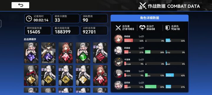 最后是菲妮娅,前期雷队的输出核心,特别是解锁共振一之后开场烧卡打AOE清怪非常好用,不仅输出强的同时还拥有回复cost的能力,所以短板就是自身技能cost消耗还是比较高的。但是!通信证的皮肤很可爱,输出提升200%(咳)
