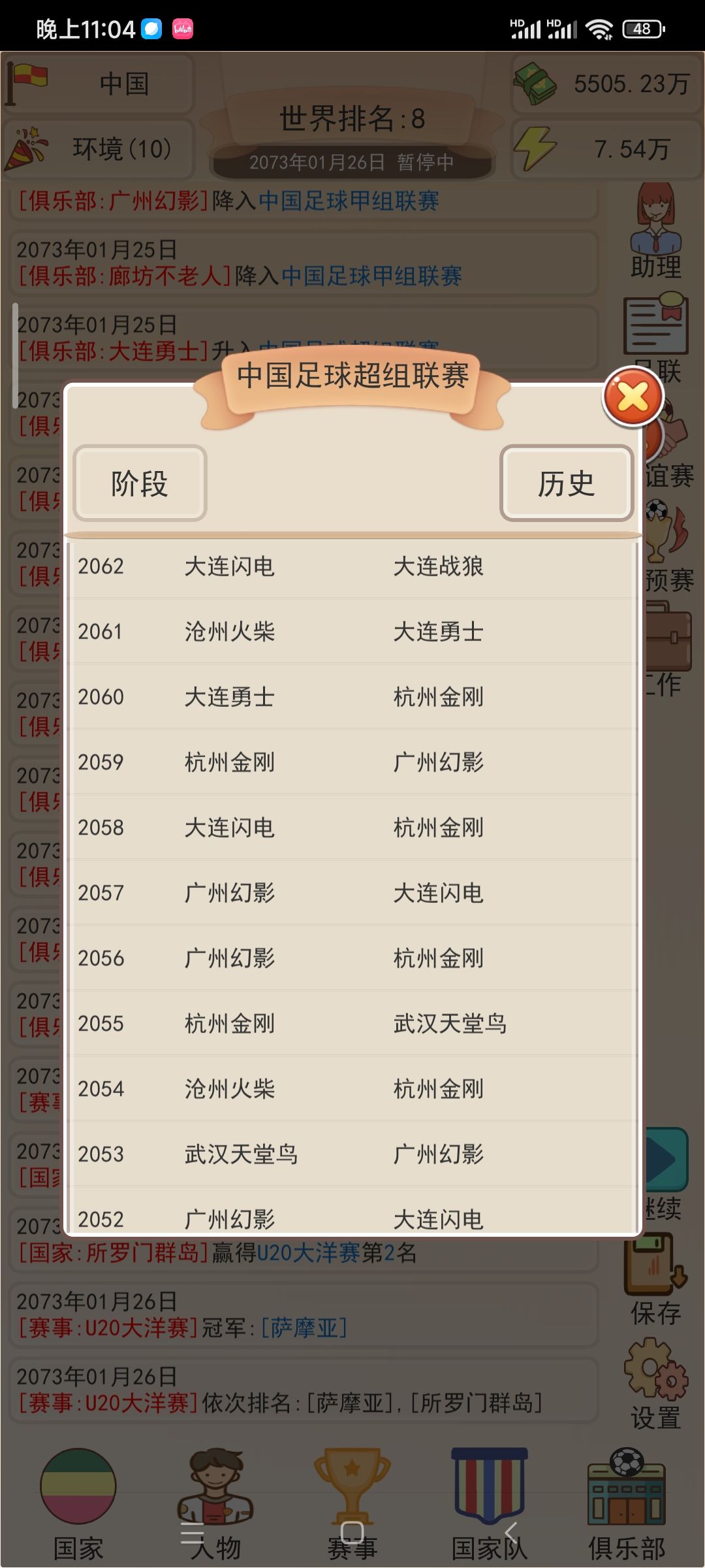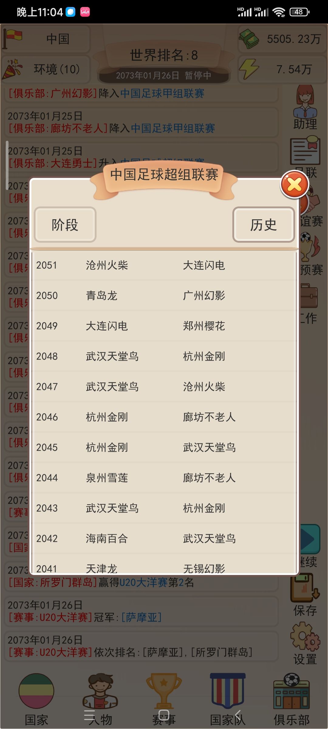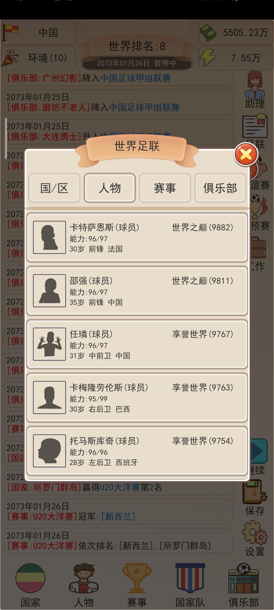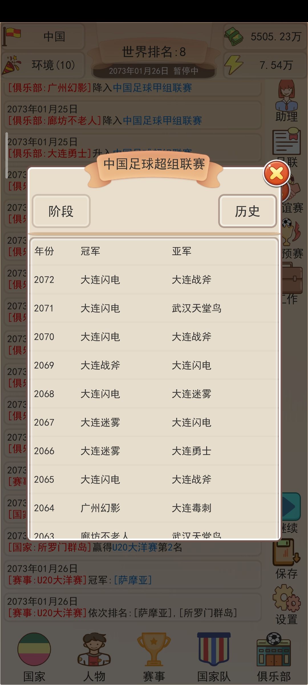 基本上现在球员以这一块已经在世界排名前列占据近半壁江山了,排名前二三十名的中国球员全部在欧洲俱乐部,再差一点的就去南美,最后40多名开外的,一直到之后的就是在国内。我大连闪电队拿到了中超八冠五亚,已经是超过了广州幻影的七个冠军和那个沧州火柴以及武汉天堂鸟了,成为了名副其实的中超豪门球队。现在中超有八支会员俱乐部,中甲有6支,中乙有4支,业余联赛还有两支球队没有升上来。世界排名长期靠长期在9到10名左右,就是俱乐部不给力,都排名百名开外,主要是没钱,没钱签那些大球星,而且身价上亿的都有好多,全部都在欧洲踢,踢球。