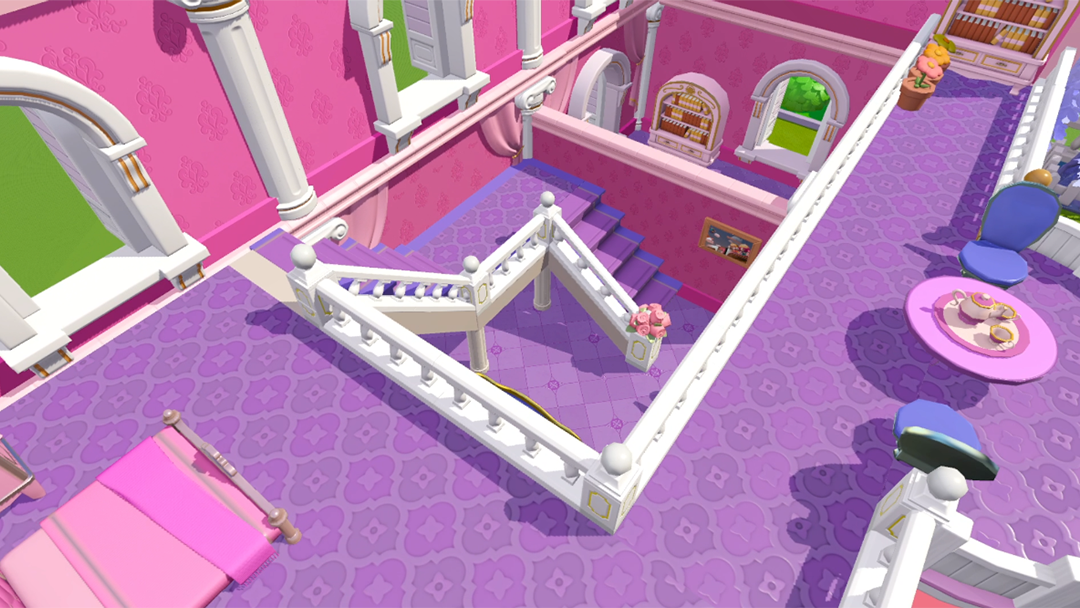 粉色的砌墙、纯白的庭柱